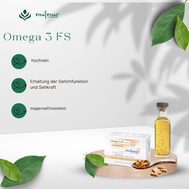 Unser hochreines Omega 3 FS ist magensaftresistent, dass bedeutet das sich die Kapsel erst im Darm auflöst. So wird das Öl optimal aufgenommen und unangenehmes Aufstoßen vermieden.