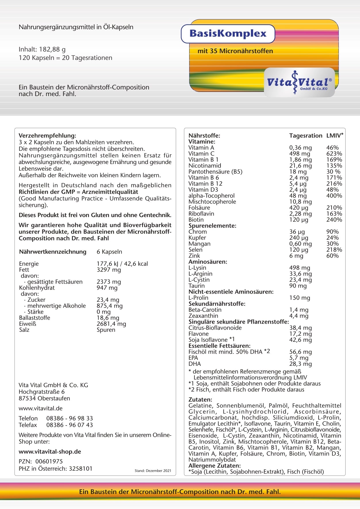 Die Rezeptur basiert auf der Micronährstoff-Composition nach Dr. med. Fahl und ist ideal für Menschen, die ihre Ernährung gezielt ergänzen möchten.