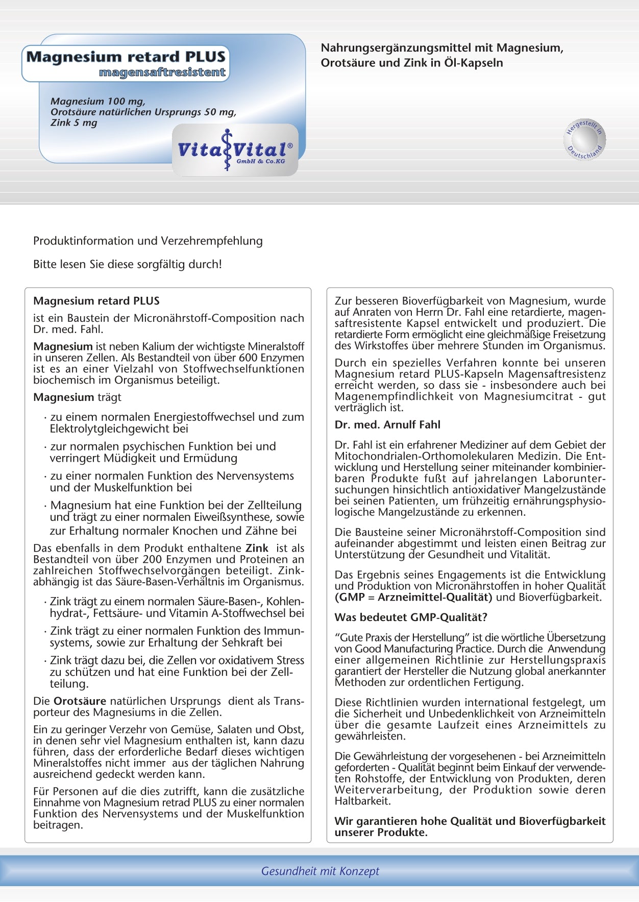 Magnesium retard PLUS wird in Deutschland hergestellt und erfüllt die internationalen GMP Richtlinien (Gute Herstellungspraxis, Good Manufacturing Practice). Diese Qualitätsstandards garantieren eine kontrollierte Produktion, geprüfte Rohstoffe und höchste Sicherheit für den Verbraucher. Jede Charge wird überwacht und dokumentiert, sodass Reinheit, Stabilität und Verlässlichkeit jederzeit gewährleistet sind.