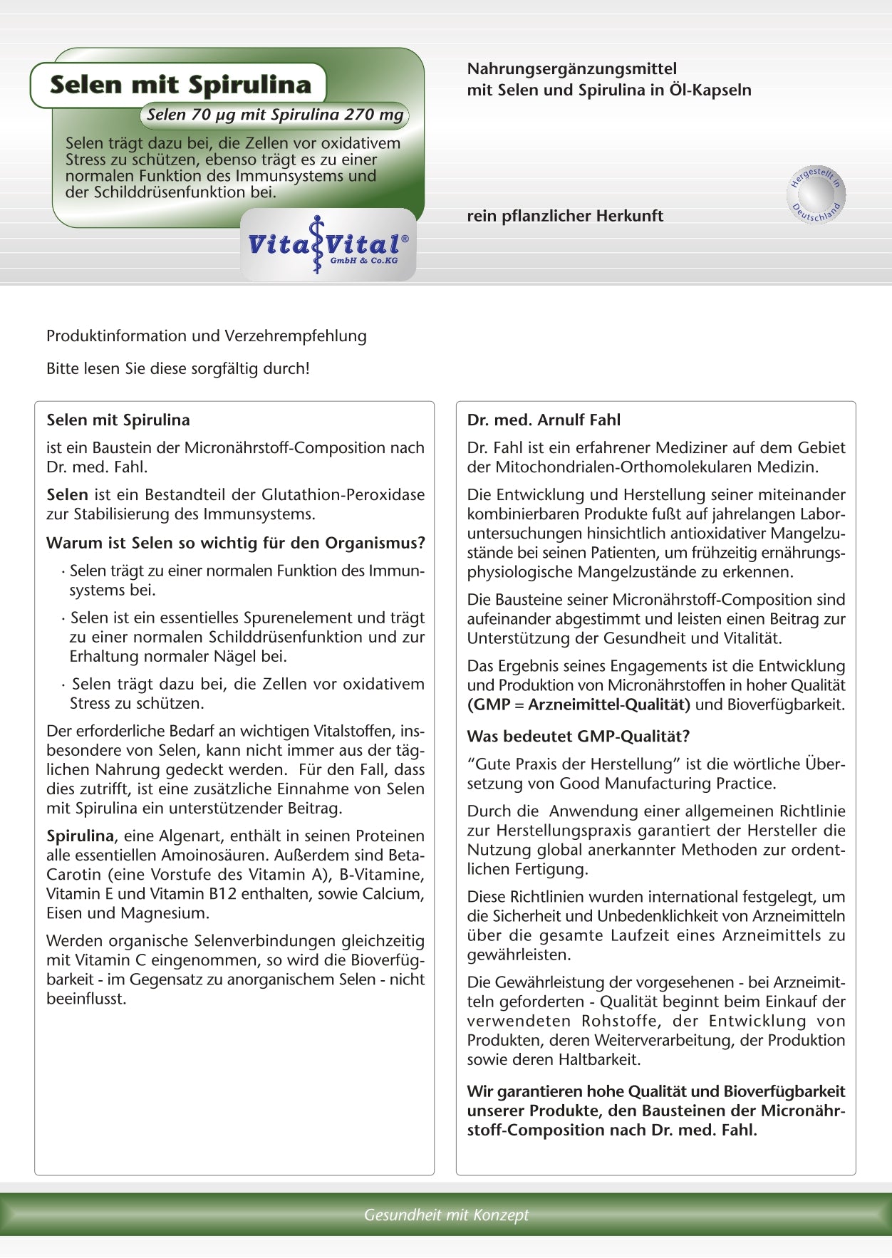 Selen mit Spirulina kombiniert ein essentielles Spurenelement mit einer nährstoffreichen Mikroalge und ist ein Bestandteil der bewährten Micronährstoff-Composition nach Dr. med. Fahl.